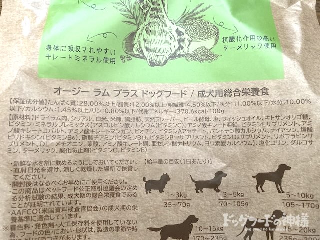 Aussie Lamb Plus(オージーラムプラス)ドッグフードの1日あたりの給餌量は?